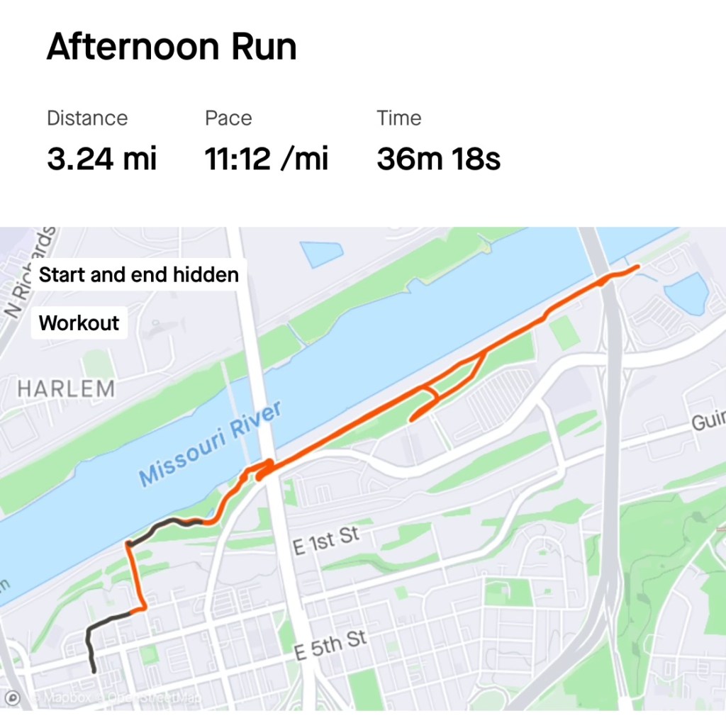 Came back to the bus after some AM ambulation and decided to go for my first run of the trip. 62 and sunny out. Changed into my shorts and running shoes, and set out for the riverfront. Finished 5k along a supremely scenic path, a down and back that took me under a couple of big bridges, and past the world’s first privately financed stadium purpose-built exclusively for a professional women’s soccer team2. Listened to Casiopea the whole time. Great run3.