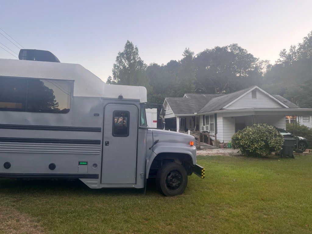 I come into my slim gravel driveway a little hot, but I’m home. The neighbors are out — Lauren and Ashley, with their four boys who cannot wait to see this bus. Within seconds of putting it in park, I’m welcomed with a mob of kid hugs, questions, and updates from recent soccer games.